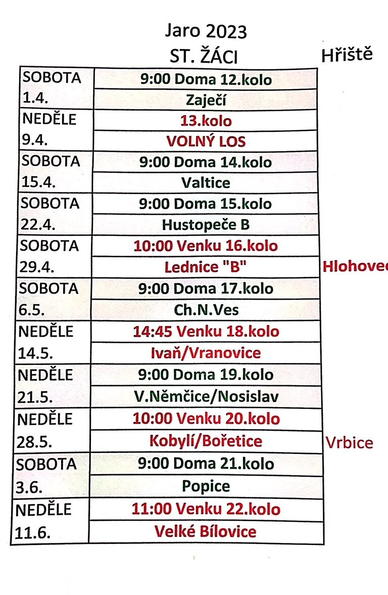 Nejbližší zápasy