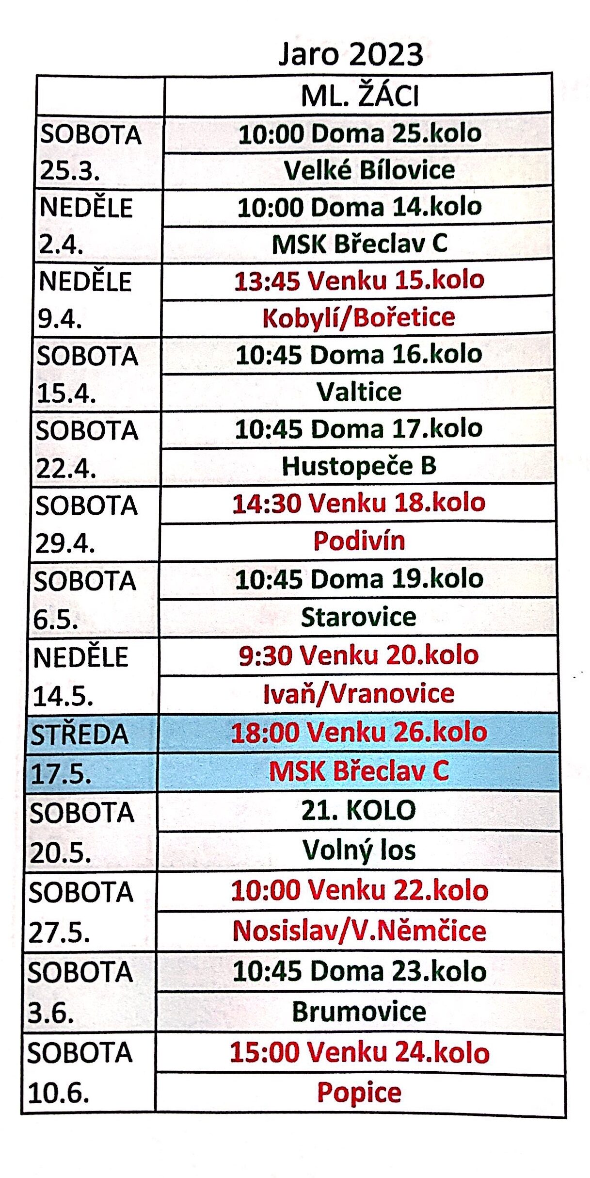 Nejbližší zápasy